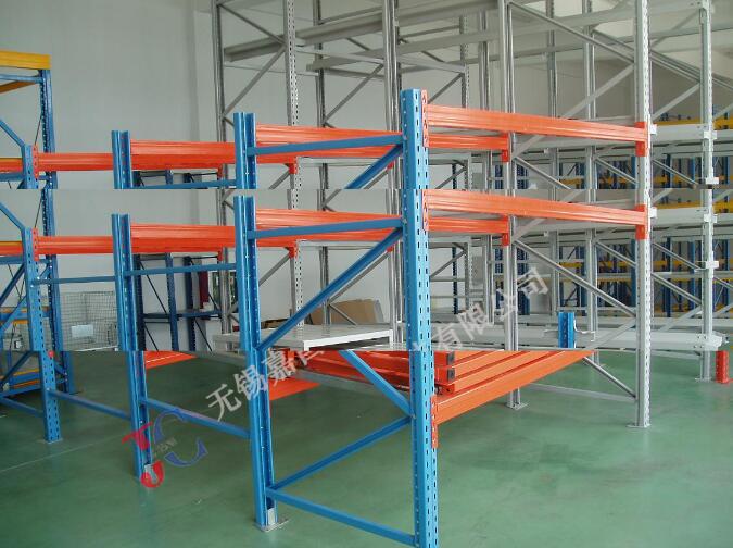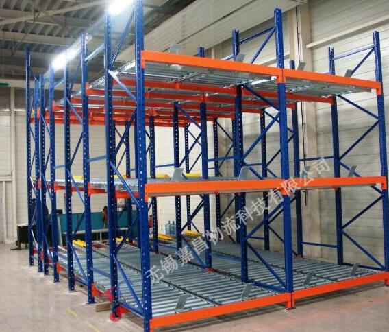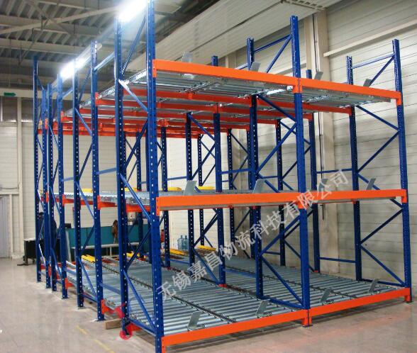 常見的幾種貨架 立體貨架   倉庫的儲存方式自平面儲存向高層化立體儲存發展以來,貨架即成為立體倉庫的主體。由滿足不同功能要求的各種不同形式的貨架所組成的多種多樣的自動化、機械化倉庫,已成為倉儲系統以至整個物流系統或生產工藝流程中的重要環節。   托盤貨架   托盤貨架以儲存單元化托盤貨物,配以巷道式堆垛機及其他儲運機械進行作業。高層貨架多采用整體式結構,一般是由型鋼焊接的貨架片(帶托盤),通過水平、垂直拉桿以及橫梁等構件聯接起來。其側面間隙6,考慮在原始位置貨物的停放精度,堆垛機的停位精度,堆垛機及貨架的安裝精度等;貨物支承的寬 度。,必須大于側面間隙凸,免得貨物一側處于無支承狀態。   重力式貨架   重力式貨架的每一個貨格就是一個具有一定坡度的存貨滑道。人庫起重機裝入滑道的貨物單元能夠在自重作用下,自動地從入庫端向出庫端移動,直至滑道的出庫端或者碰上已有的貨物單元停住為止。位于滑道出庫端的第一個貨物單元被出庫起重機取走之后,在它后面的各個貨物單元便在重力作用下依次向出庫端移動一個貨位。為減少貨箱與貨架之間的摩擦力,在存貨滑道上設有輥子或滾輪。   貫通式貨架   貫通式貨架在同樣的空間內比通常的托盤貨架幾乎多一倍的儲存能力,因為取消位于各排貨架之間的巷道,將貨架合并在一起,使同一層、同一列的貨物互相貫通。   閣樓式貨架   這是一種充分利用空間的簡易貨架。在已有的貨架或工作場地上建造一個中間閣樓以增加儲存面積。閣樓樓板上一般可放輕泡及中小件貨物或儲存期長的貨物,可用叉車、輸送帶、提升機、電動葫蘆或升降臺提升貨物。閣樓上一般采用輕型小車或托盤牽引小車作業。   移動式貨架   移動式貨架易控制,安全可靠。每排貨架有一個電機驅動,由裝置于貨架下的滾輪沿鋪設于地面上的軌道移動。其突出的優點是提高了空間利用率,一組貨架只需一條通道,而固定型托盤貨架的一條通道,只服務于通道內兩側的兩排貨架。所以在相同的空間內,移動式貨架的儲存能力比一般固定式貨架高得多。
